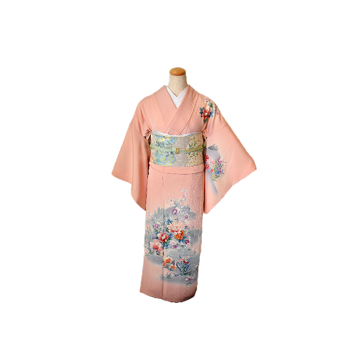 SH-37薄桃色地・遠山に牡丹と草花模様訪問着P01800 OP0900