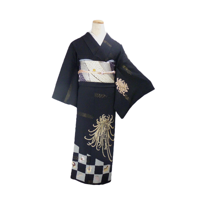 SH–17黒地に一松と宝尽くし大輪糸菊模様訪問着