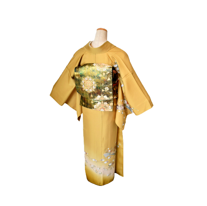 SH-38山葵色地に金彩友禅・衣桁と草花模様訪問着 P03600 OP0900